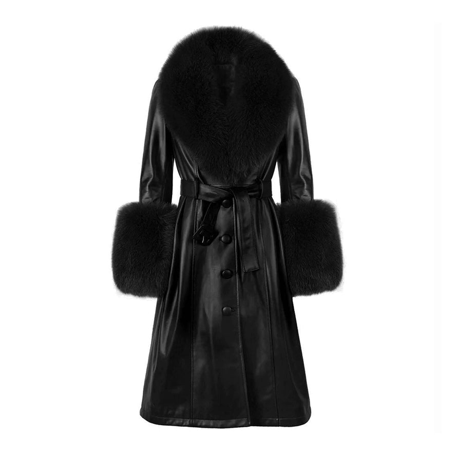 Classic trim Tokyo Icon leather trench coat with waist cinching removable belt.